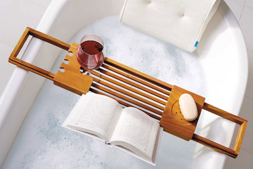 Transitioning from a high-energy day to a low-key night isn’t always such a smooth ride. Especially after a hectic or stressful day. But, as Vera Wang notes, taking a bath is a great way to wash away (metaphorically and physically) the things you’d rather let go of before bed. The hazy steam of a bath seems to exist between reality and dreaming, so it makes sense that many use a bath to bridge the gap between the two. Our recommendation for the ultimate escape? Accessorize your bath with this Teak Bathtub Caddy ($50) and bring your book into the steam with you.