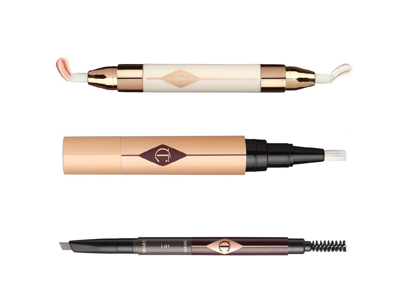 2. Nix those I-barely-slept dark circles with Mini Miracle Eye Wand ($55) underneath the eyes to add luminosity, and apply The Retoucher Concealer ($48) to mask any imperfections. Use Brow Lift ($32) to groom brows and frame your eyes and face.