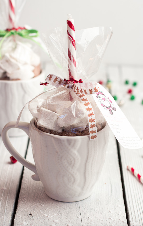 You can use a store bought mug, or craft a plain one yourself. What really adds to this is the hot cocoa mix you add inside. Simply package your favourite cocoa mix in a bag and top with lots and lots of mini marshmallows. If you want to go the extra mile, you can dip a spoon in some melted chocolate and include it with the mug, or include a candy cane to give the cocoa a peppermint taste. It will add some extra holiday goodness when they stir the cocoa mix. Check out this tutorial on halfbakedharvest.com to make the exact mug above, including instructions on how to make your own marshmallows.
