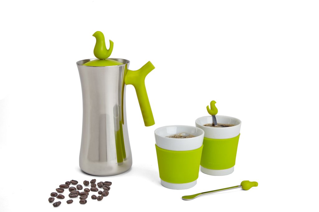 In terms of aesthetics, this pretty green coffee set beats the typical french press any day. It comes with two matching cups and spoons, and is ready to make coffee on the fly.