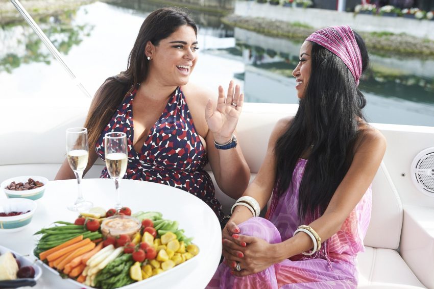 8. Jana, Roxy and Joan are taking part in a sound therapy session to help rid themselves of bad vibes. Roxy sees it as a way to get some sleep so she’s all for it. The three are poked and prodded while zenned-out on the floor to music, each focusing on their breathing and their intentions of being better people and getting rid of negativity. Roxy actually comes out of it a bit emotional, but grateful. Another win for spiritual Jana. But, that doesn’t last too long as Joan mentions a boat party she’e been planning and how she’s “being Switzerland” a.k.a. being neutral when it comes to Kara, whom she already invited.