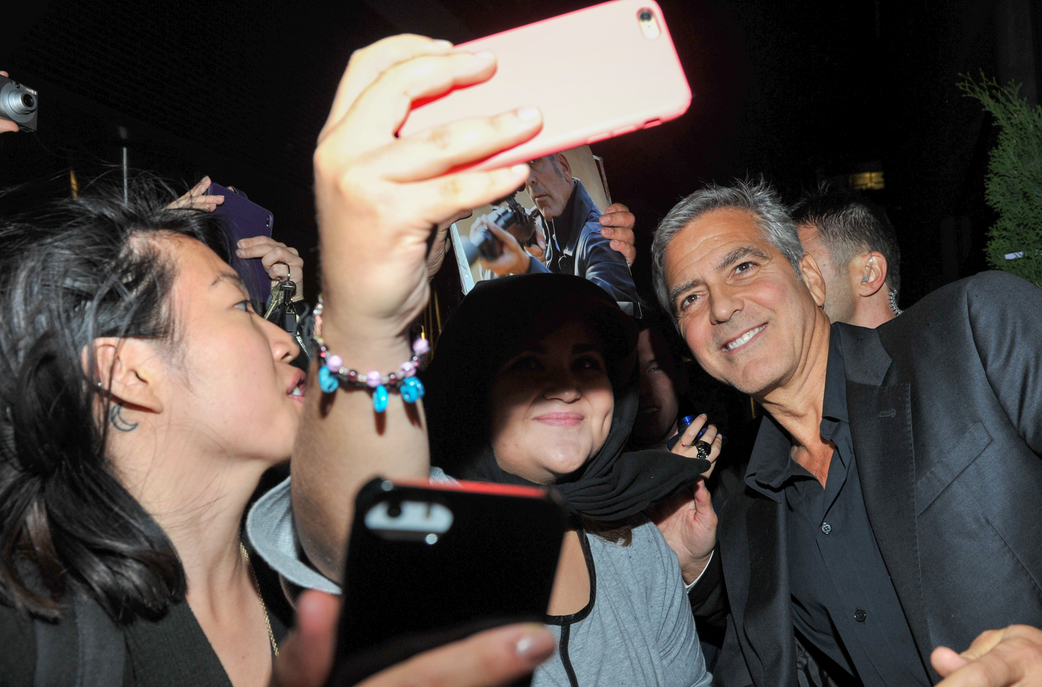 George Clooney greets fans at Montecito Restaurant for the post-screening event presented by Audi of Our Brand Is Crisis
